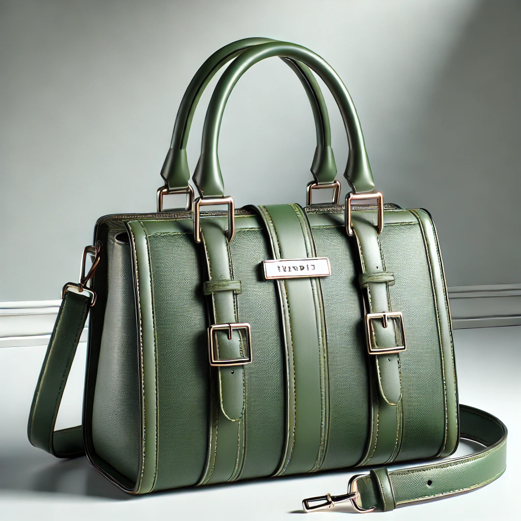 The Trendie Luxe Green Handbag features sleek green leather with structured lines and metallic accents. Its sturdy handle and detachable shoulder strap offer versatility, making it perfect for both casual and formal occasions. The vibrant color and luxurious craftsmanship make it a standout accessory for any outfit.